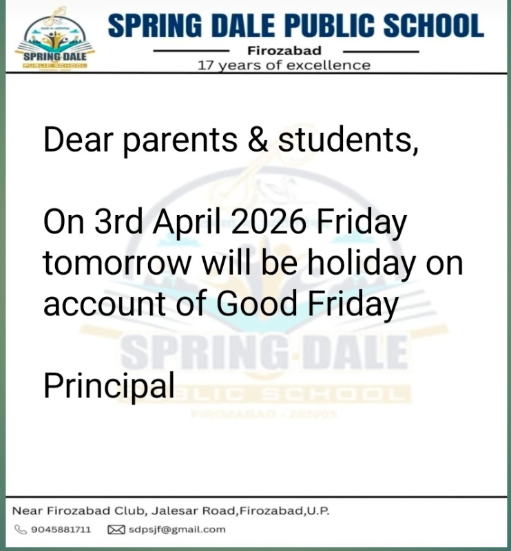 प्रिय अभिभावकों/छात्र-छात्राओं, बड़े हर्ष एवं गौरव का विषय है कि SOF इंटरनेशनल एग्जामिनेशन सत्र 2025-26 की परीक्षा में विद्यालय के सैकड़ों छात्र-छात्राओं ने प्रथम राउंड में मेडल तथा स्टेट व नेशनल रैंक्स हांसिल की थी,वे सभी बधाई के पात्र हैं। *इसी के साथ सेकंड राउंड जिसकी परीक्षा जोनल सेंटर आगरा में संपन्न हुई थी।विद्यालय के एक होनहार छात्र Madhav Garg S/o Shri Rishabh Garg ने मैथमेटिक्स में स्टेट(ज़ोनल) लेवल पर 31 वी रैंक हांसिल कर परिवार तथा विद्यालय का गौरव बढ़ाया है।* विद्यालय परिवार अपेक्षा करता है कि विद्यालय का प्रत्येक बच्चा नए कीर्तिमान स्थापित करे।सभी को हार्दिक बधाई। ???????????????????????????????????????????????????????????????????????? निदेशक